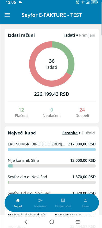 Ovde možemo videti grafičke prikaze izdatih i primljenih računa, najveće kupce, dobavljače, plaćanja tj. otvorene stavke itd.